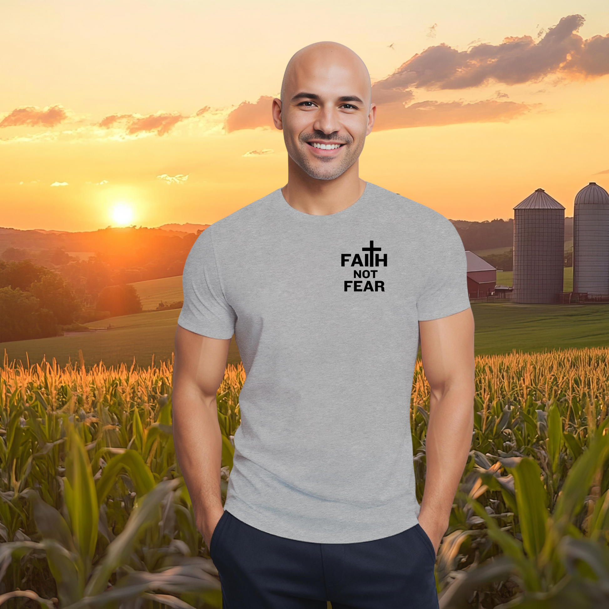 Stand firm in your faith with our “Faith NOT Fear” men’s t-shirt, a bold reminder to trust God in every season. Crafted from 100% airlume combed and ringspun cotton, this shirt offers exceptional softness and breathability for all-day comfort. The solid athletic gray color pairs effortlessly with any style, while the short sleeve, crew neck design ensures a classic, versatile fit. Perfect for church, casual wear, or sharing your faith wherever you go.