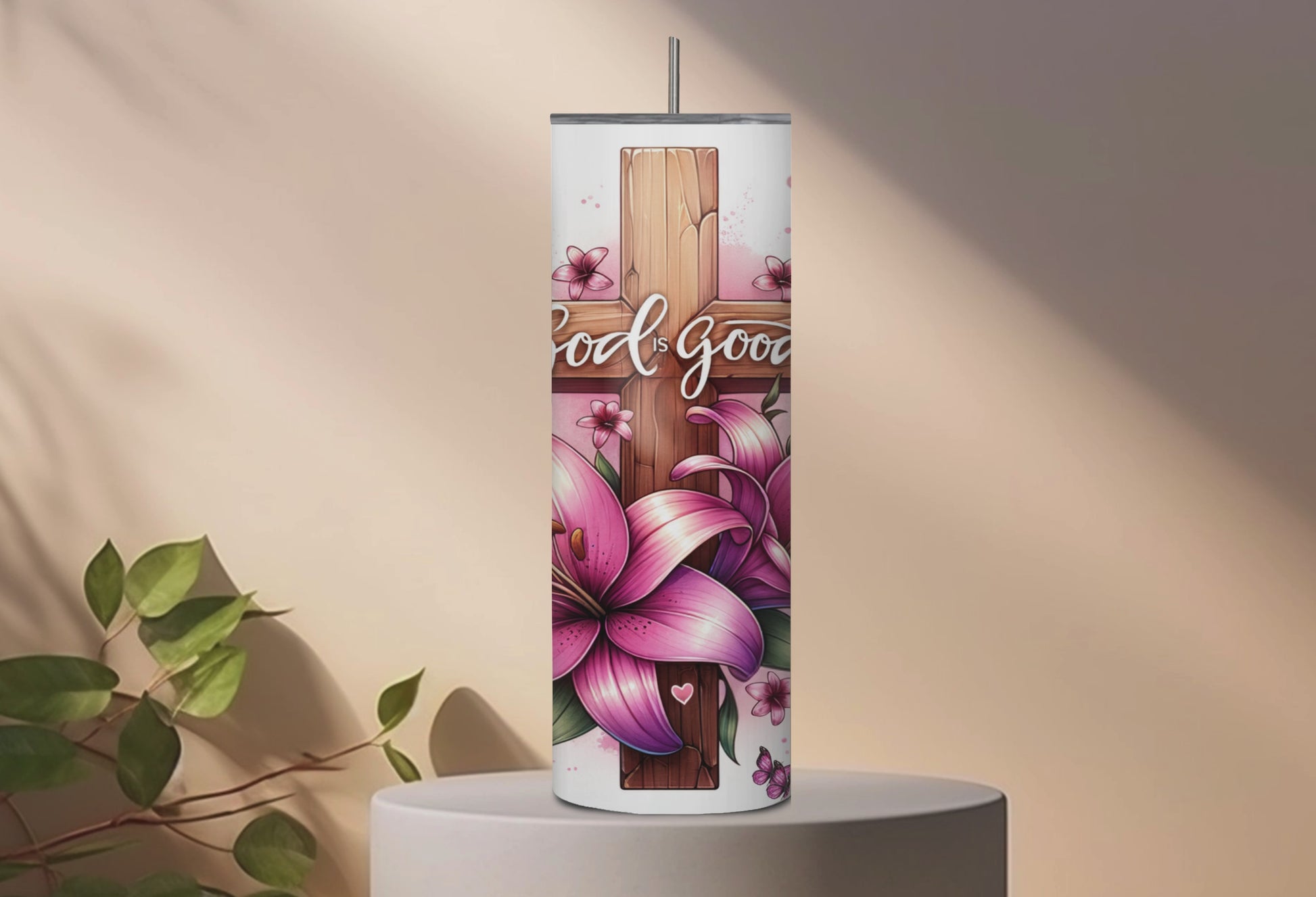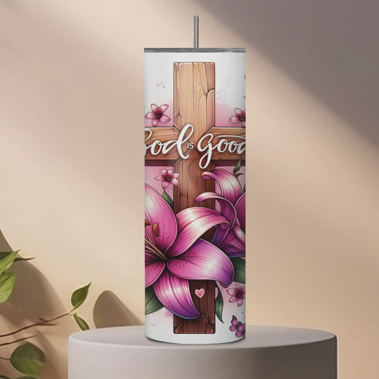 20 oz Skinny Tumbler – “God is Good” Christian Design