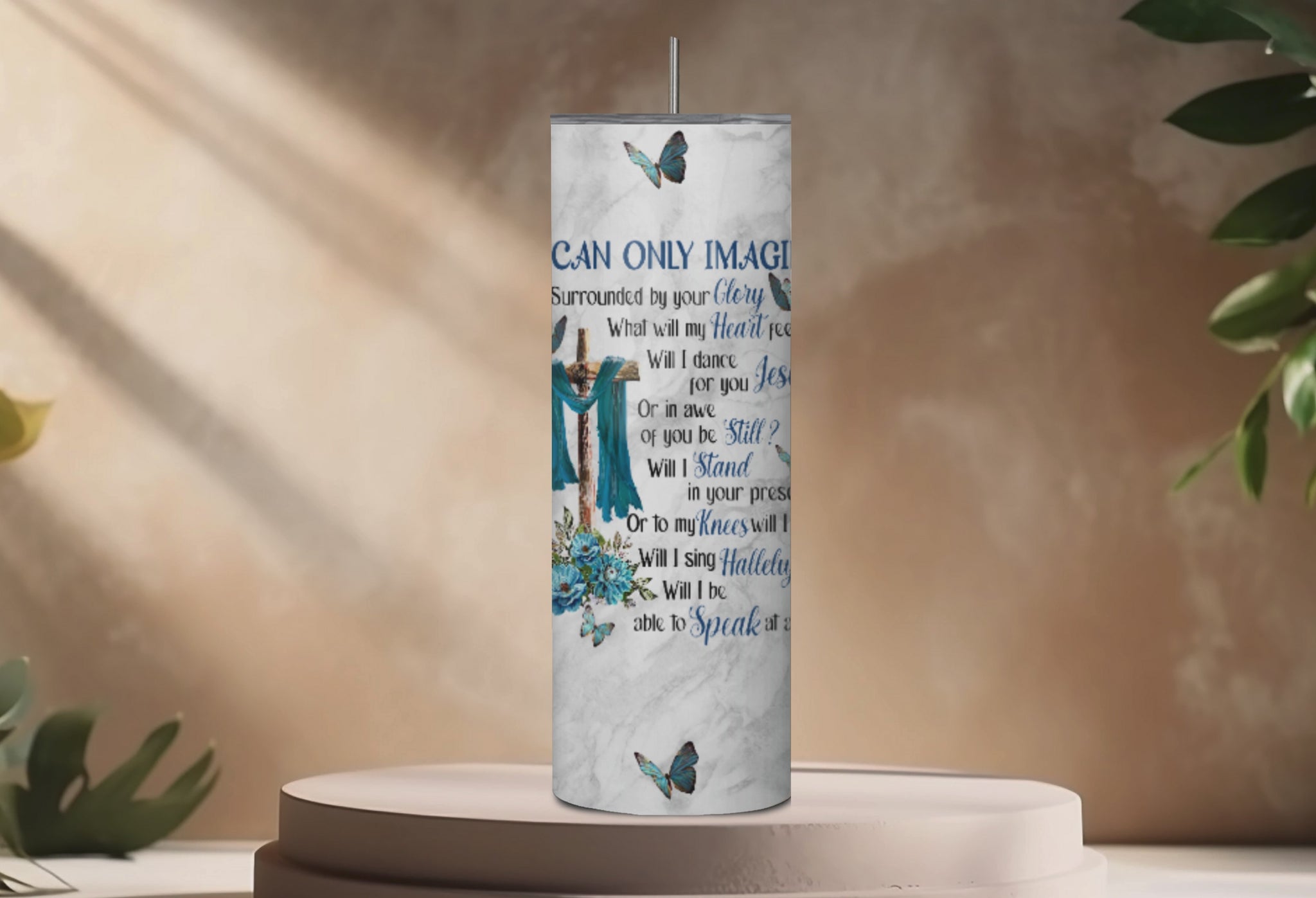 Sip in faith and reflection with our 20 oz Skinny Tumbler featuring the inspiring Christian design, "I Can Only Imagine." Crafted from high-quality stainless steel, this tumbler is double-walled to keep your drinks hot or cold for hours. It comes with a secure slide lid and a reusable metal straw—perfect for daily use, whether you're on the go, at your desk, or relaxing at home.